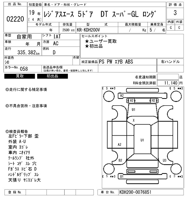 TOYOTA REGIUS ACE - лот 2220