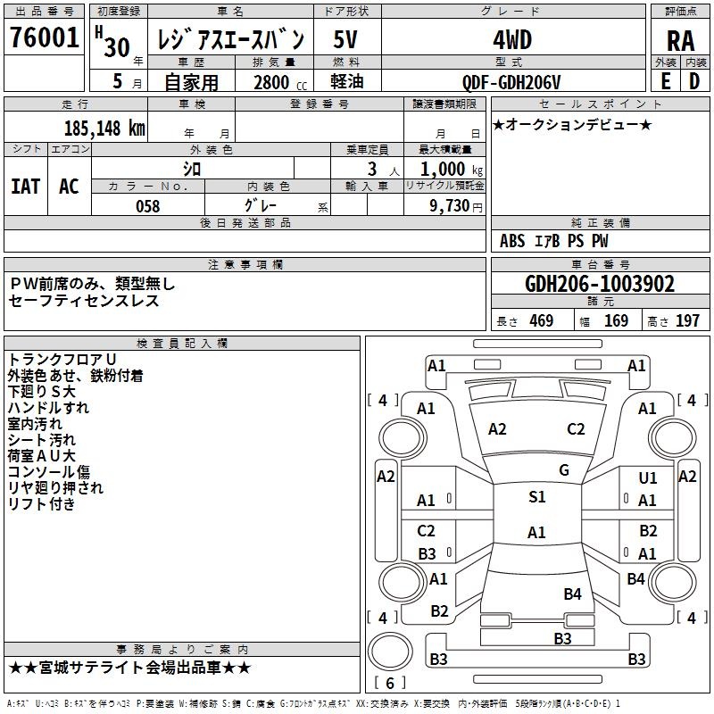 TOYOTA REGIUS VAN - лот 76001