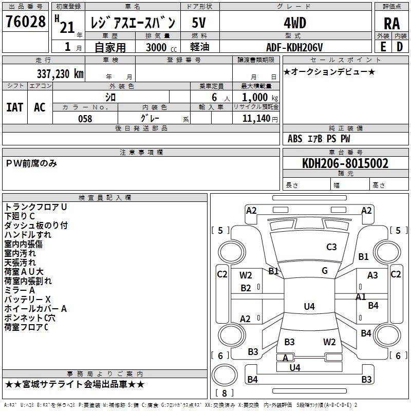 TOYOTA REGIUS VAN - лот 76028