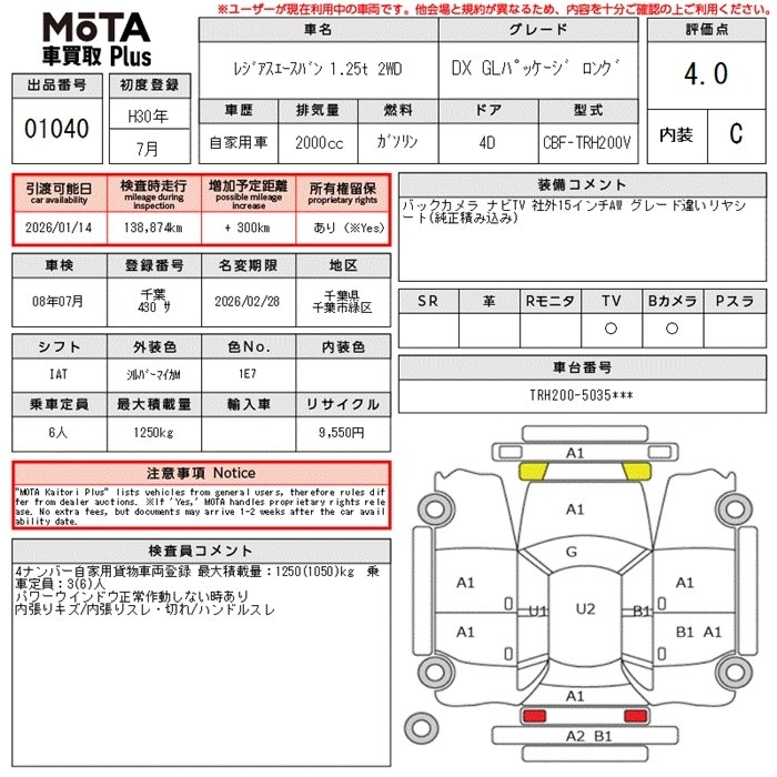 TOYOTA REGIUS VAN - лот 1040
