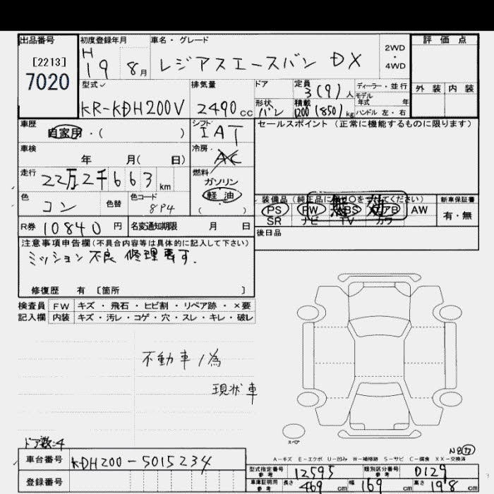 TOYOTA REGIUS VAN - лот 7020