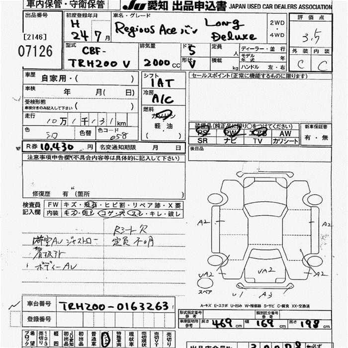 TOYOTA REGIUS VAN - лот 7126