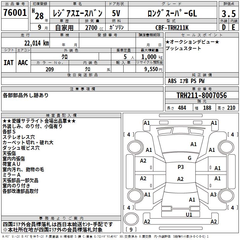 TOYOTA REGIUS VAN - лот 76001