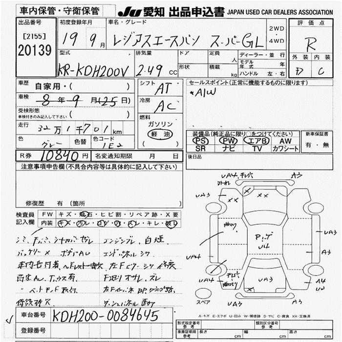 TOYOTA REGIUS VAN - лот 20139