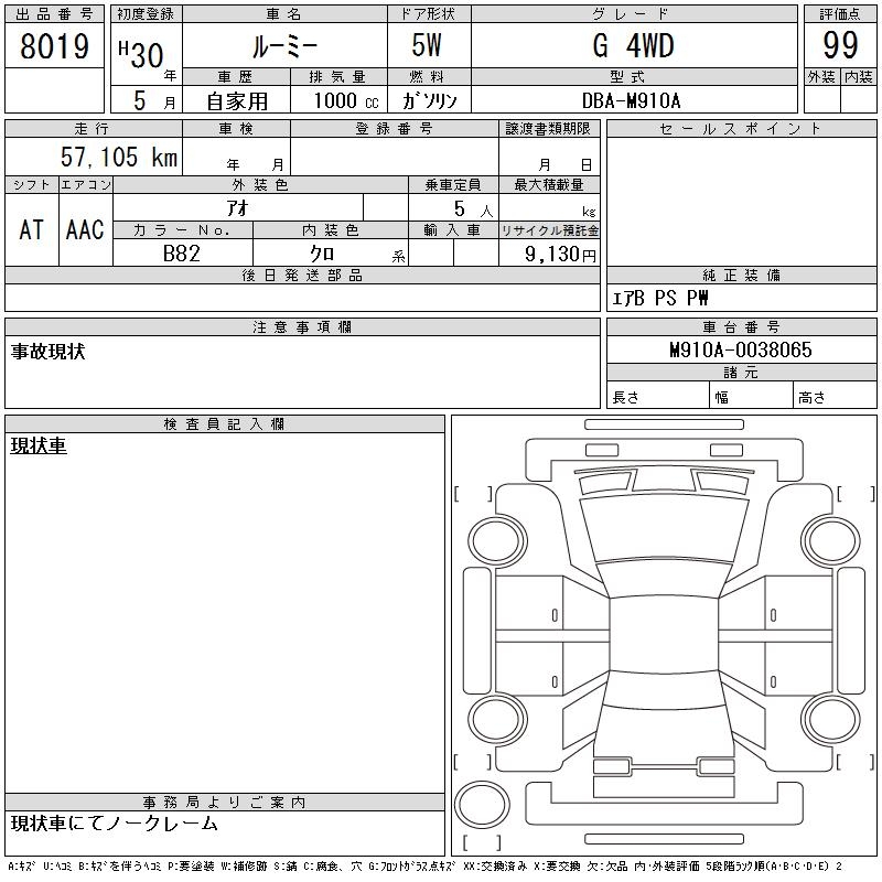 TOYOTA ROOMY G 4WD - лот 8019