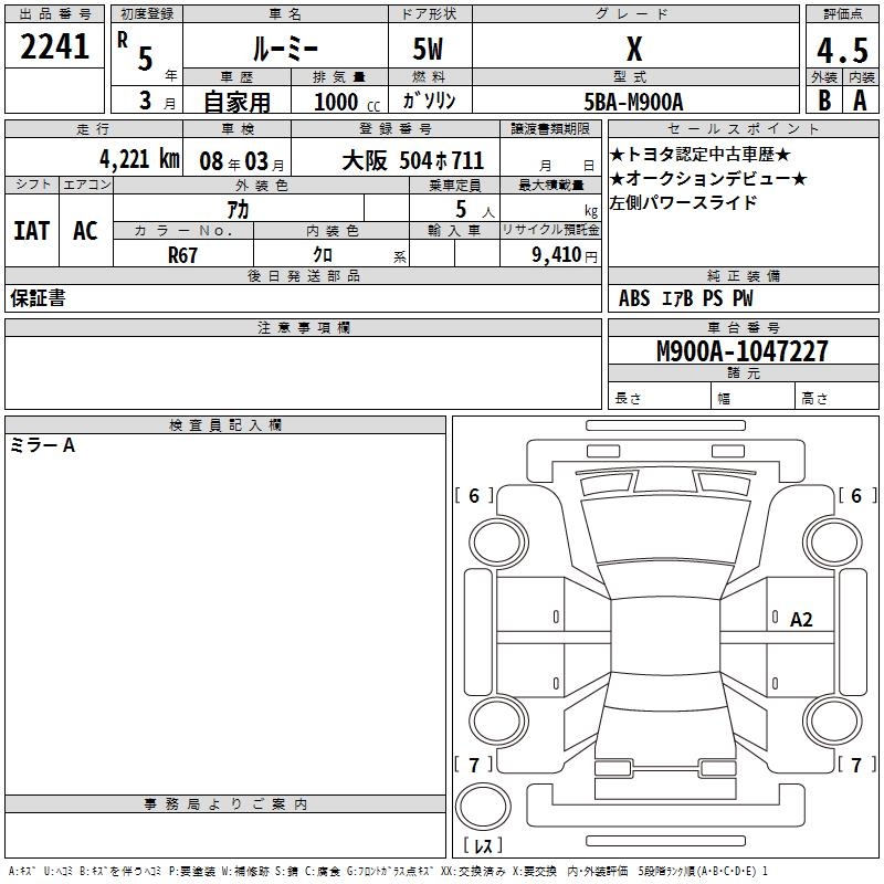 TOYOTA ROOMY X - лот 2241