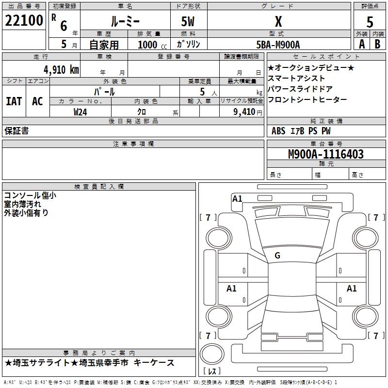 TOYOTA ROOMY X - лот 22100