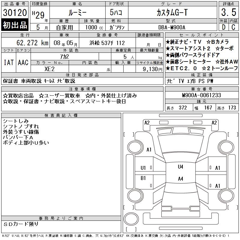 TOYOTA ROOMY CUSTOM G-T - лот 30120