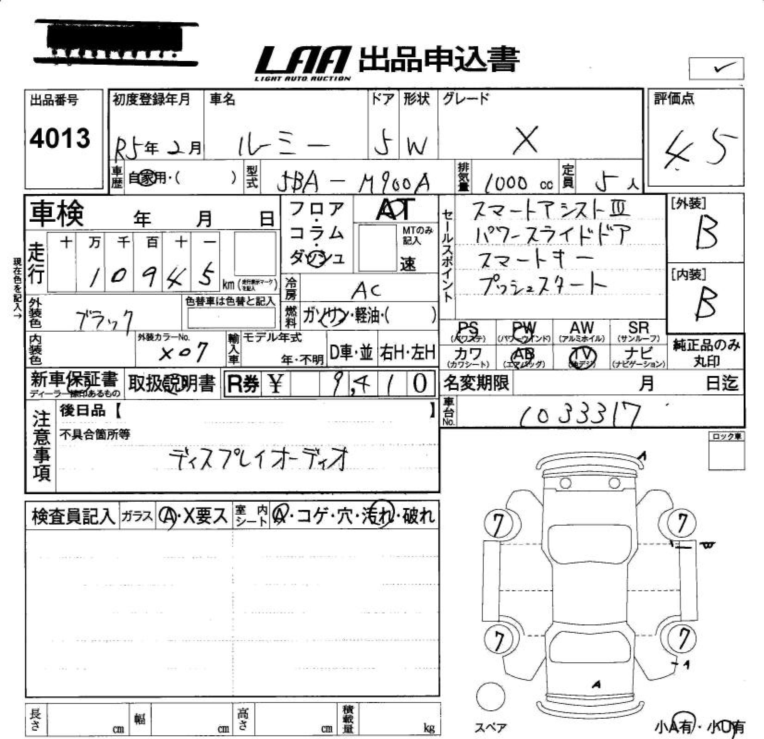 TOYOTA ROOMY X - лот 4013