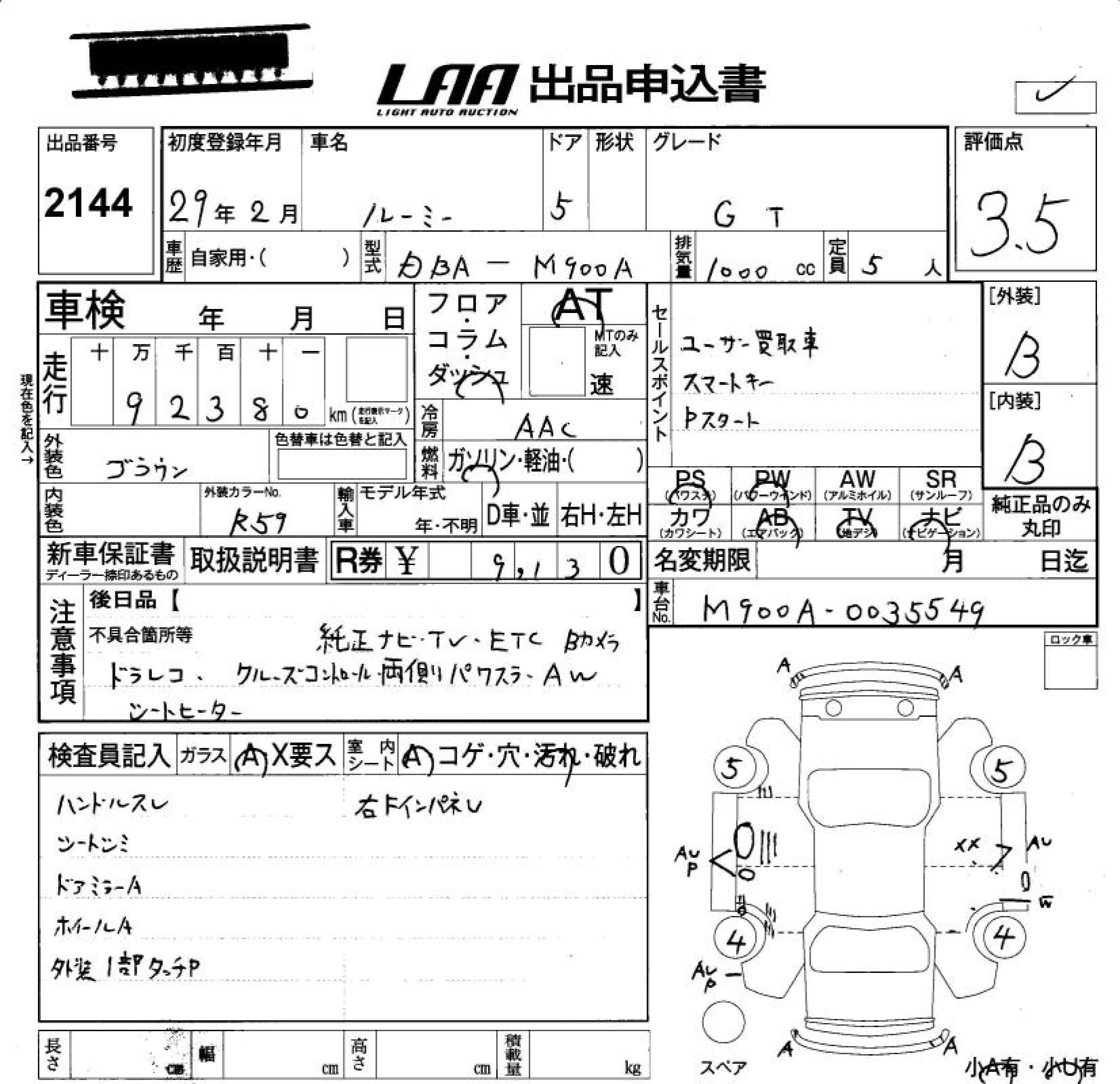 TOYOTA ROOMY G-T - лот 2144