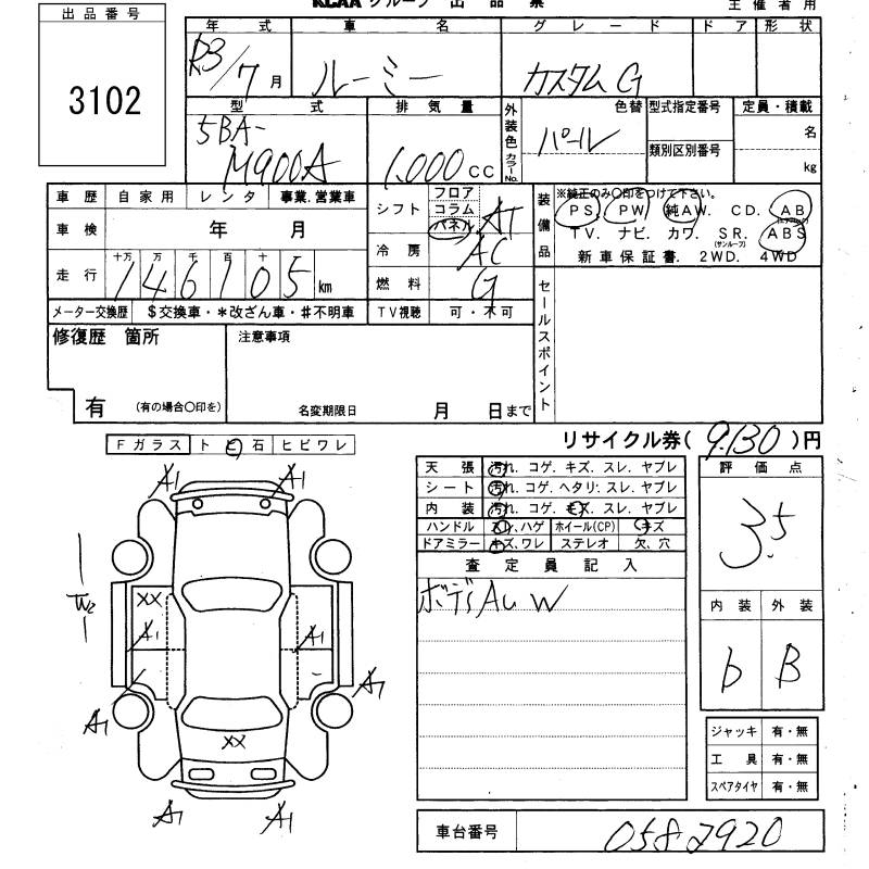 TOYOTA ROOMY CUSTOM G - лот 3102