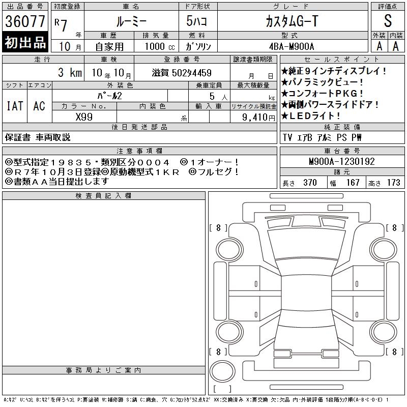 TOYOTA ROOMY CUSTOM G-T - лот 36077