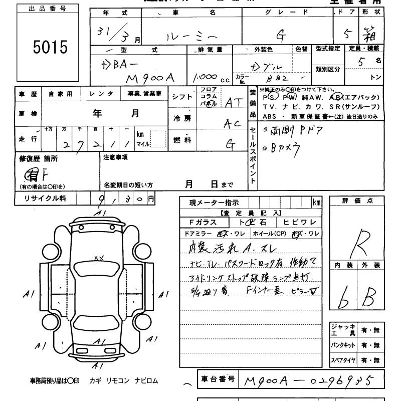 TOYOTA ROOMY G - лот 5015