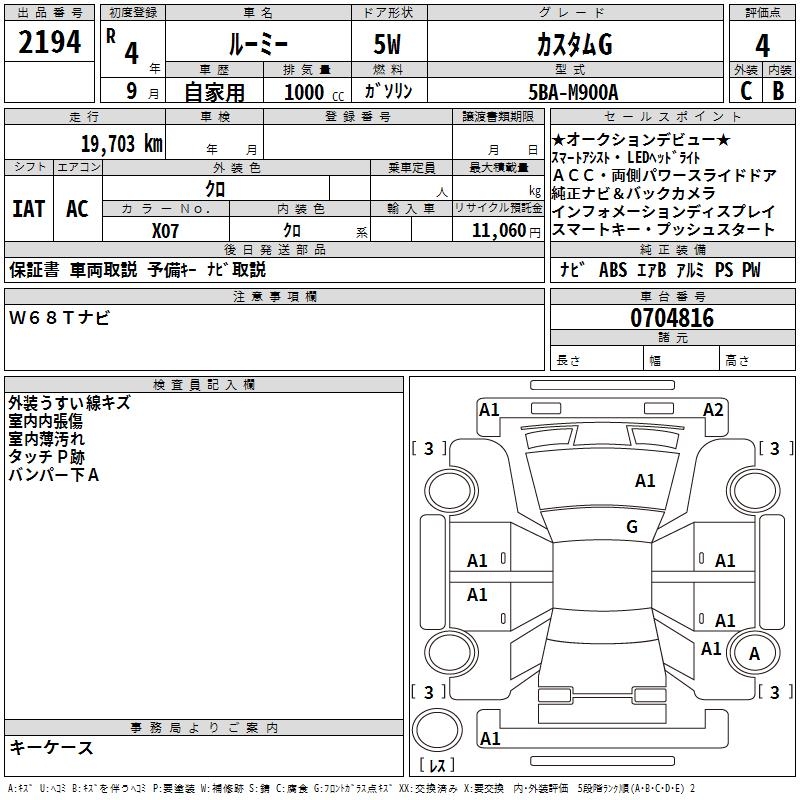 TOYOTA ROOMY CUSTOM G - лот 2194