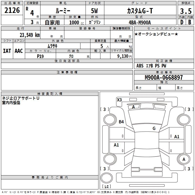 TOYOTA ROOMY CUSTOM G-T - лот 2126