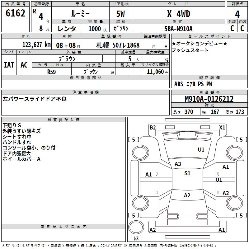 TOYOTA ROOMY X 4WD - лот 6162