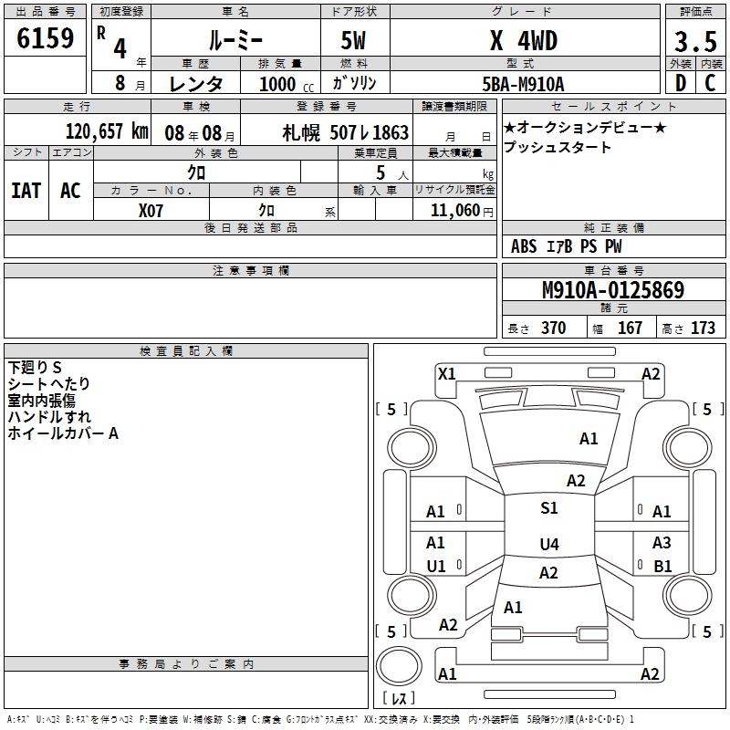 TOYOTA ROOMY X 4WD - лот 6159