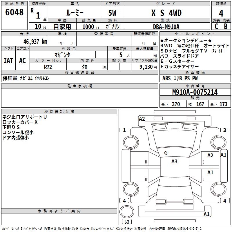 TOYOTA ROOMY X S 4WD - лот 6048