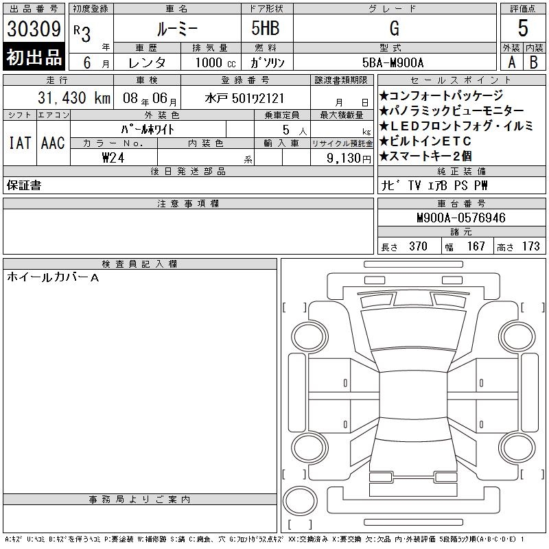 TOYOTA ROOMY G - лот 30309
