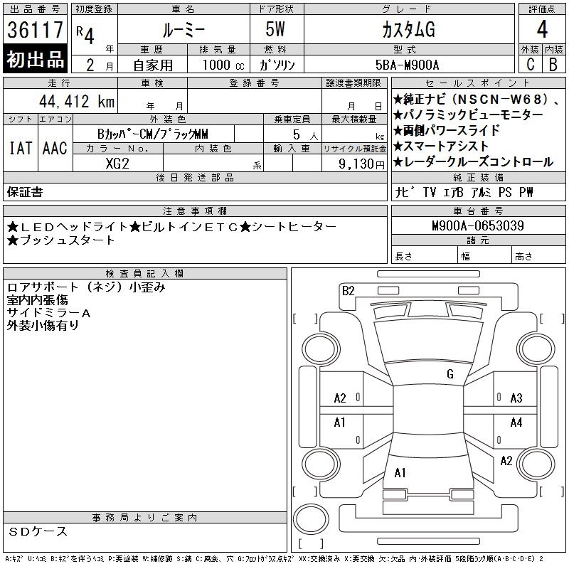 TOYOTA ROOMY CUSTOM G - лот 36117