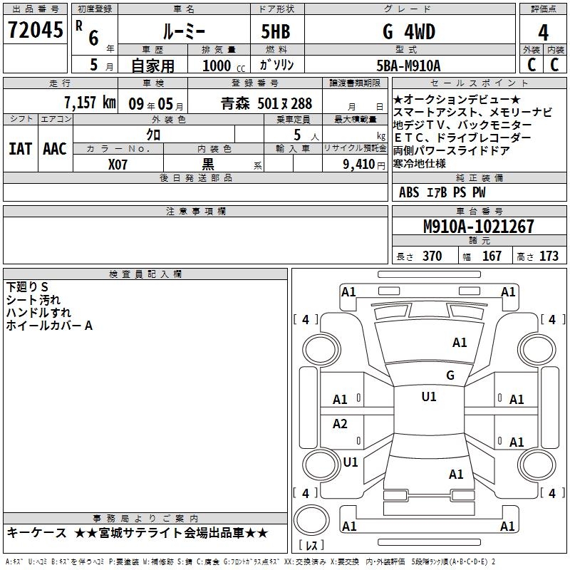 TOYOTA ROOMY G 4WD - лот 72045