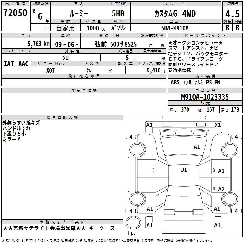 TOYOTA ROOMY CUSTOM G 4WD - лот 72050