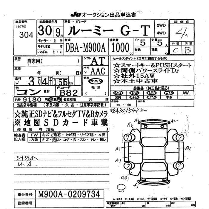 TOYOTA ROOMY G-T - лот 304
