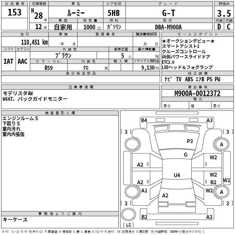 TOYOTA ROOMY G-T - лот 153