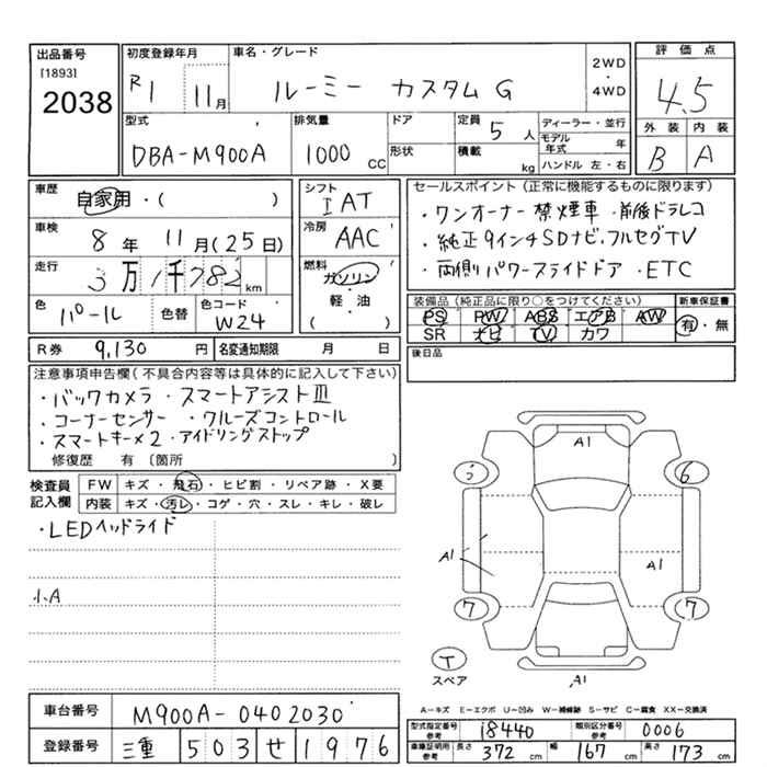 TOYOTA ROOMY CUSTOM G - лот 2038