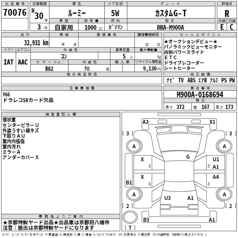 TOYOTA ROOMY CUSTOM G-T - лот 70076