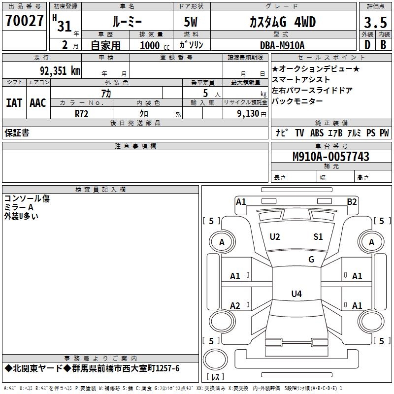 TOYOTA ROOMY - лот 70027