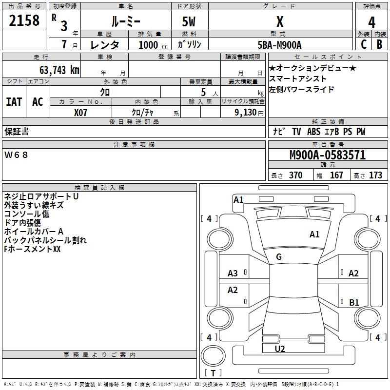 TOYOTA ROOMY X - лот 2158