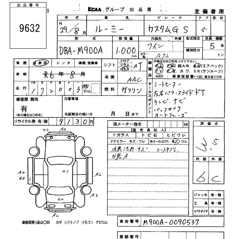 TOYOTA ROOMY - лот 9632