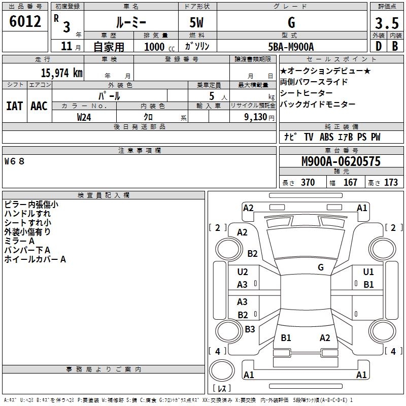 TOYOTA ROOMY - лот 6012