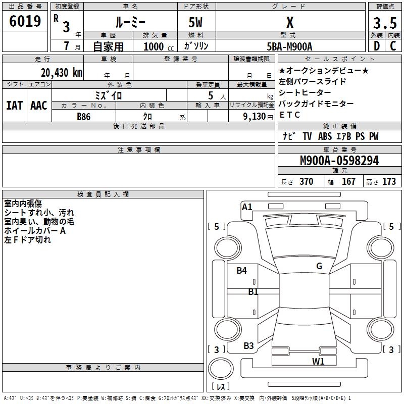TOYOTA ROOMY - лот 6019