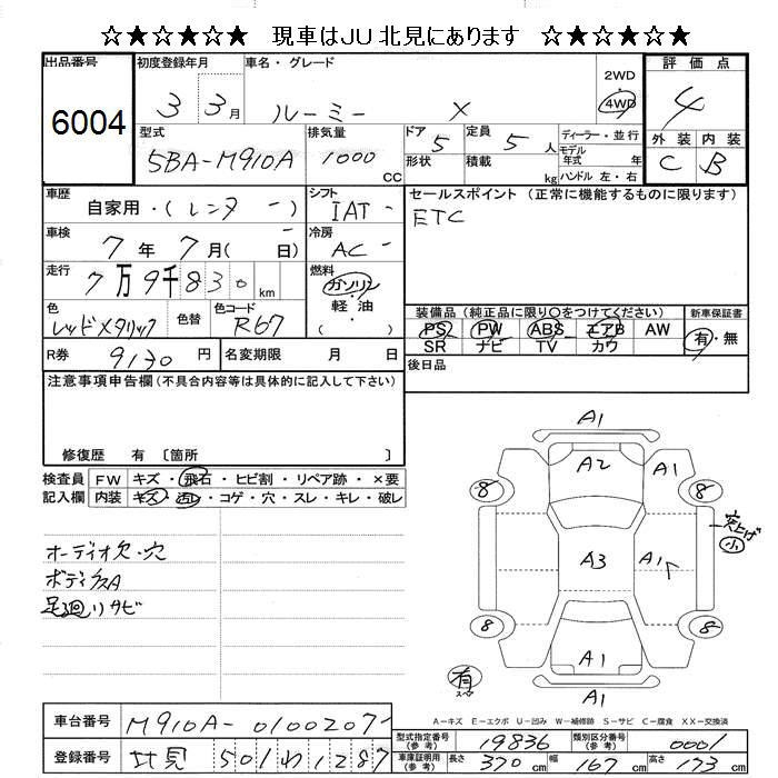 TOYOTA ROOMY - лот 6004