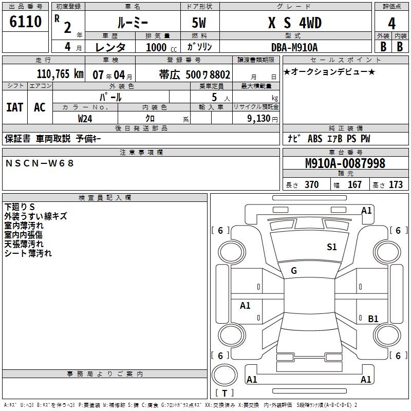 TOYOTA ROOMY - лот 6110