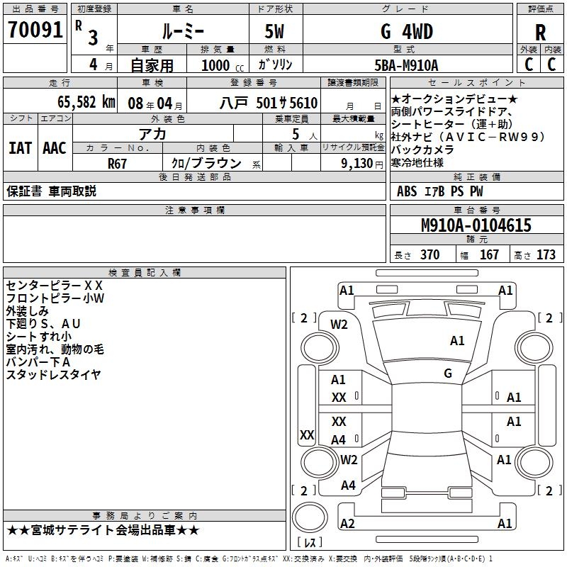 TOYOTA ROOMY - лот 70091