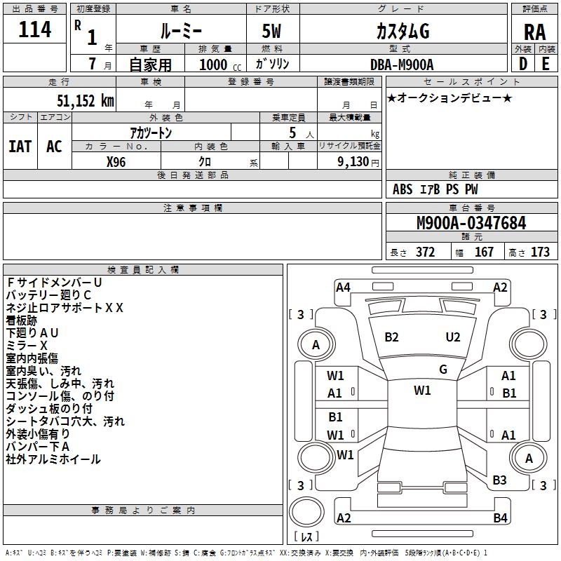 TOYOTA ROOMY - лот 114