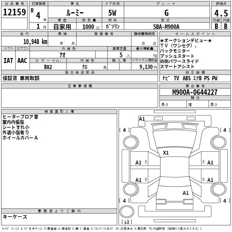 TOYOTA ROOMY G - лот 12159