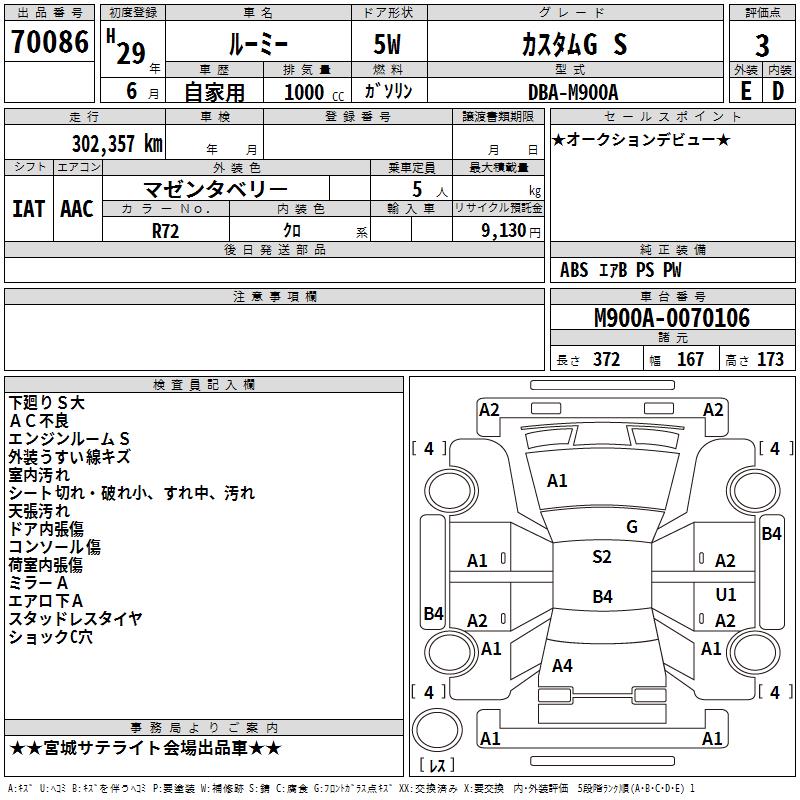 TOYOTA ROOMY - лот 70086