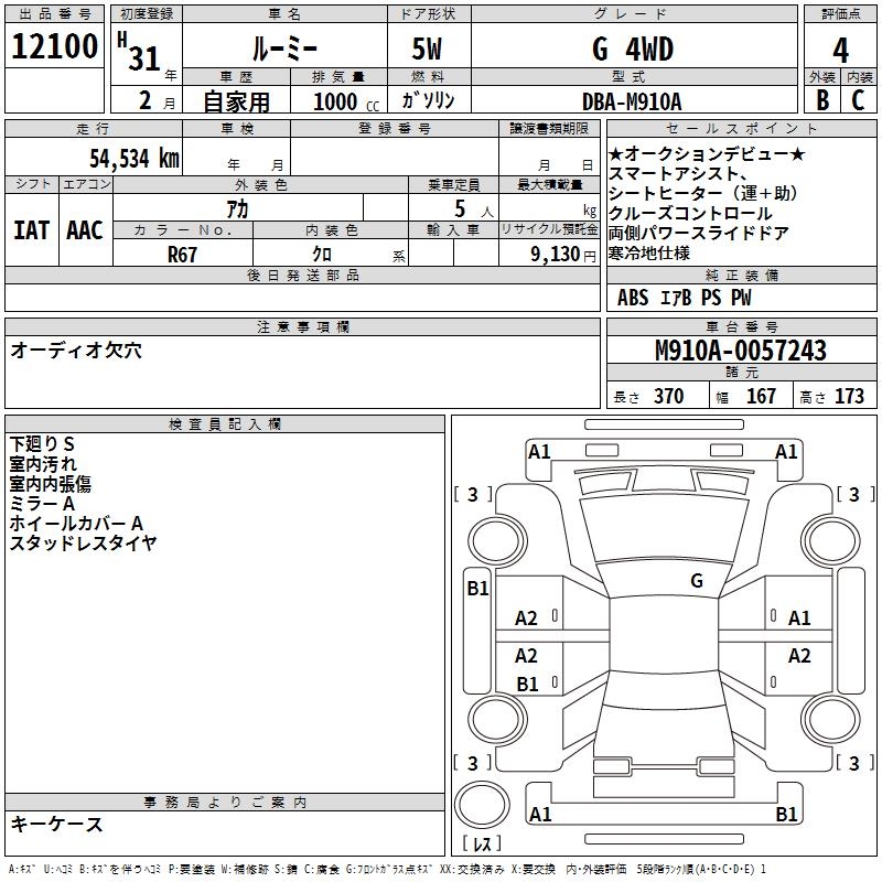 TOYOTA ROOMY - лот 12100