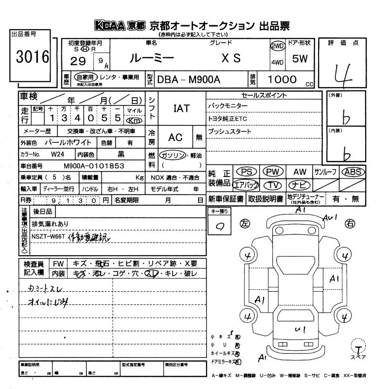 TOYOTA ROOMY - лот 3016