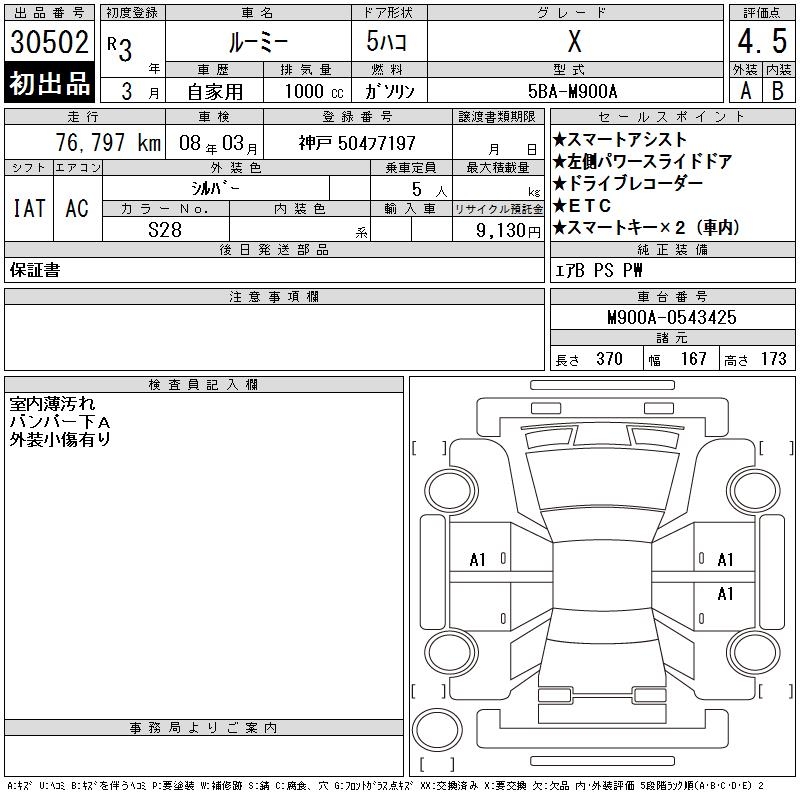 TOYOTA ROOMY - лот 30502
