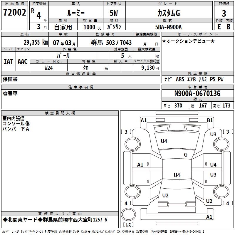 TOYOTA ROOMY - лот 72002