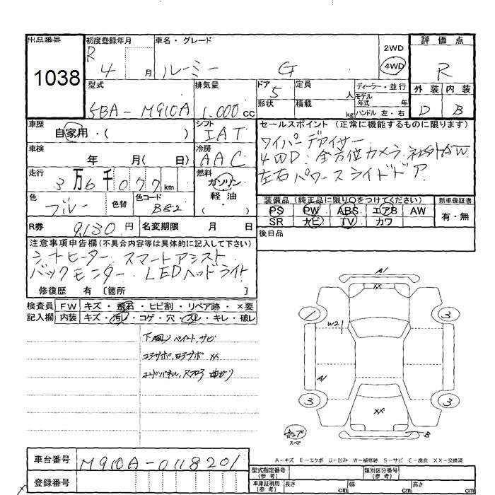 TOYOTA ROOMY - лот 1038