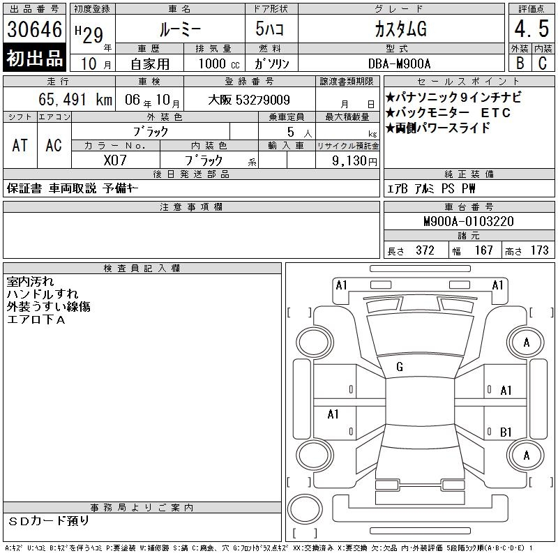 TOYOTA ROOMY - лот 30646