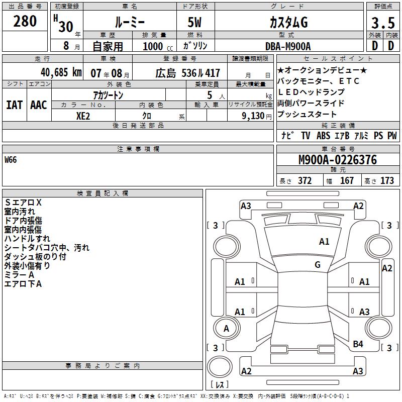 TOYOTA ROOMY - лот 280