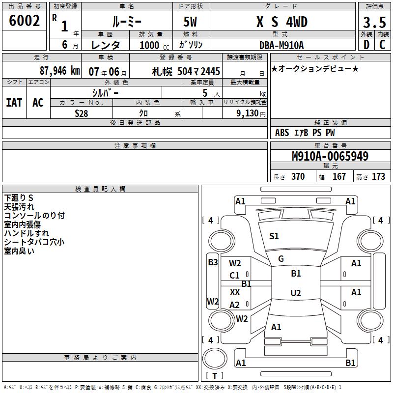 TOYOTA ROOMY - лот 6002