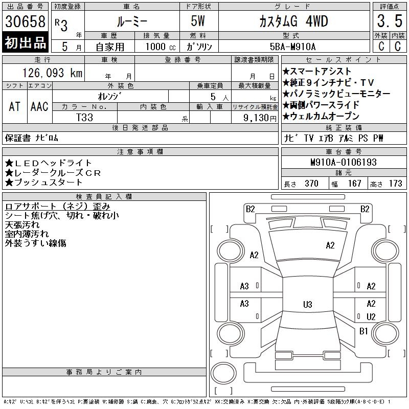 TOYOTA ROOMY - лот 30658